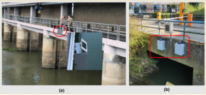 Fig.1. Deployed Flood Nodes: (a) in Quy Nhon Bac Ward, Gia Lai Province, Vietnam; (b) in Leuven, Belgium.