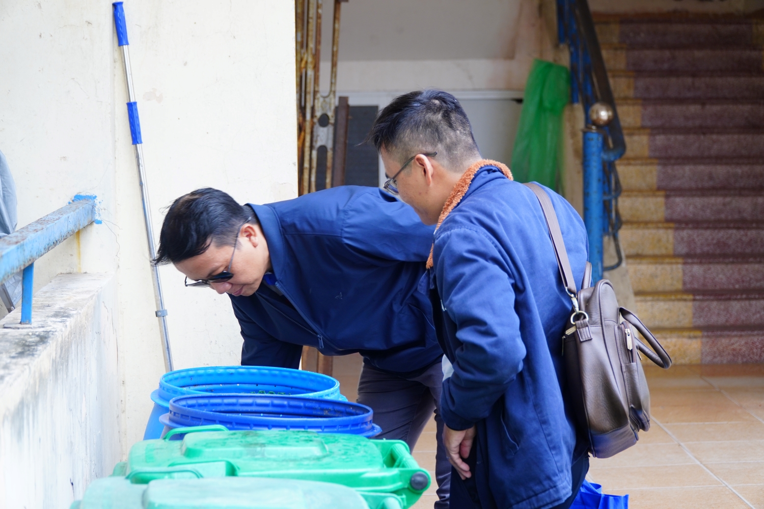 Hoạt động khảo sát thực tế công tác phân loại và xử lý rác thải trong khuôn viên Trường Đại học Quy Nhơn.