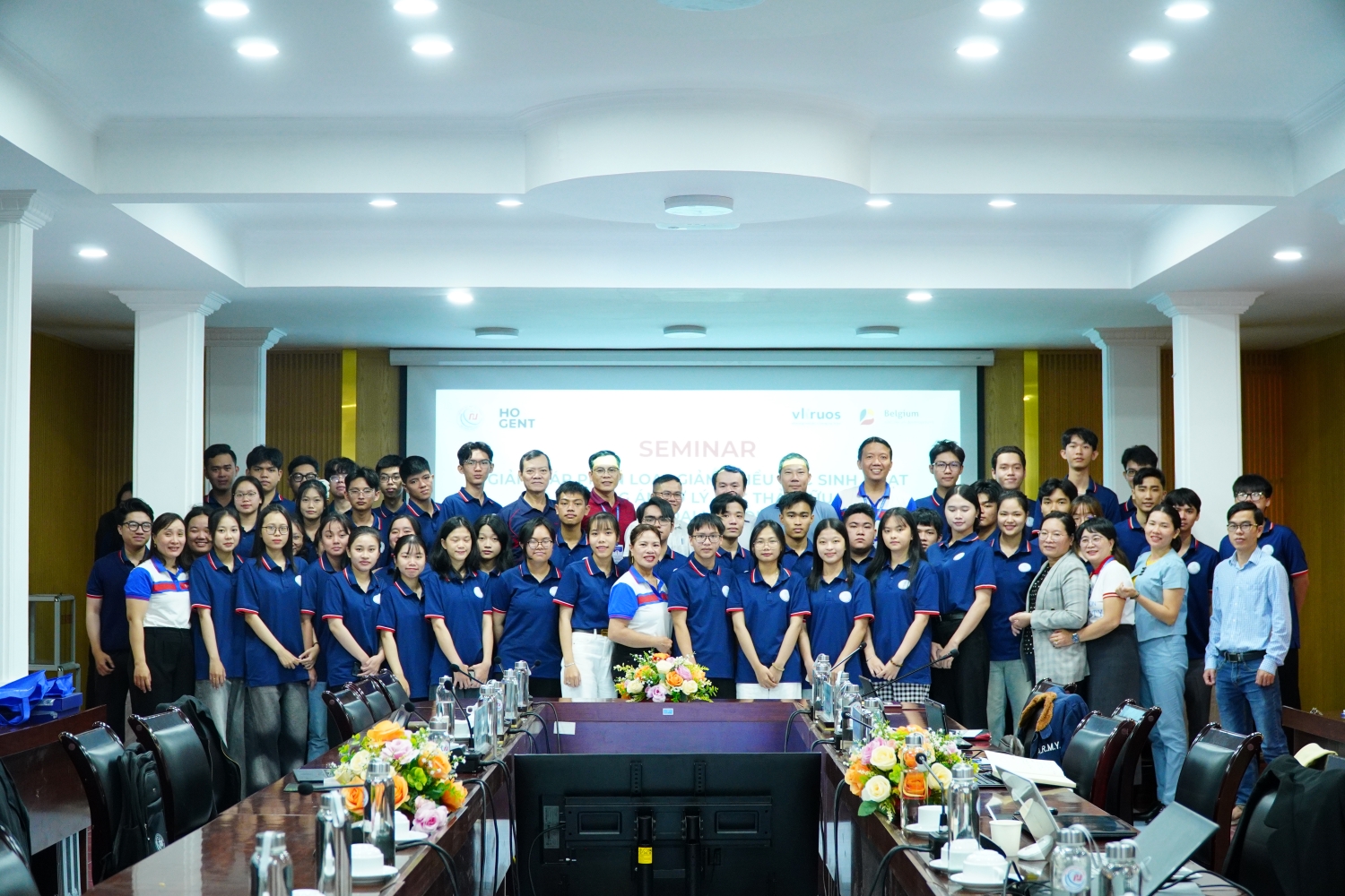 Thành viên dự án, giảng viên và sinh viên chụp ảnh lưu niệm tại seminar.